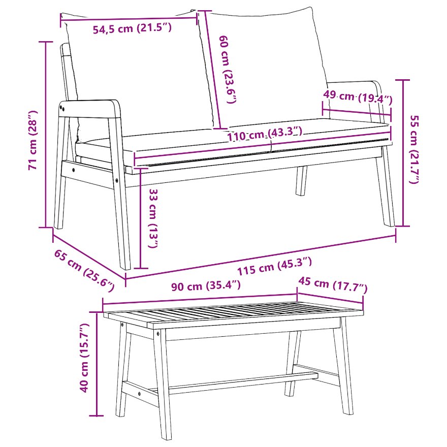 - Conține livrarea: 2 bănci + 1 masă de cafea