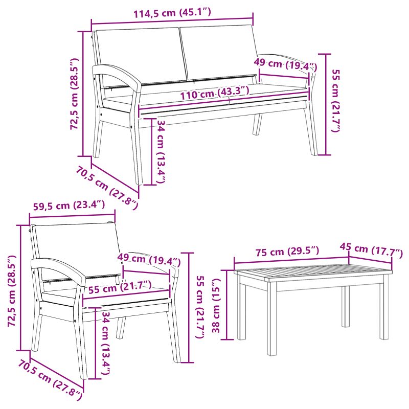 Fii primul care scrii o recenzie pentru „Set bistro 4 pcs Maro 75 x 45 x 38cm Lemn masiv de acacia”