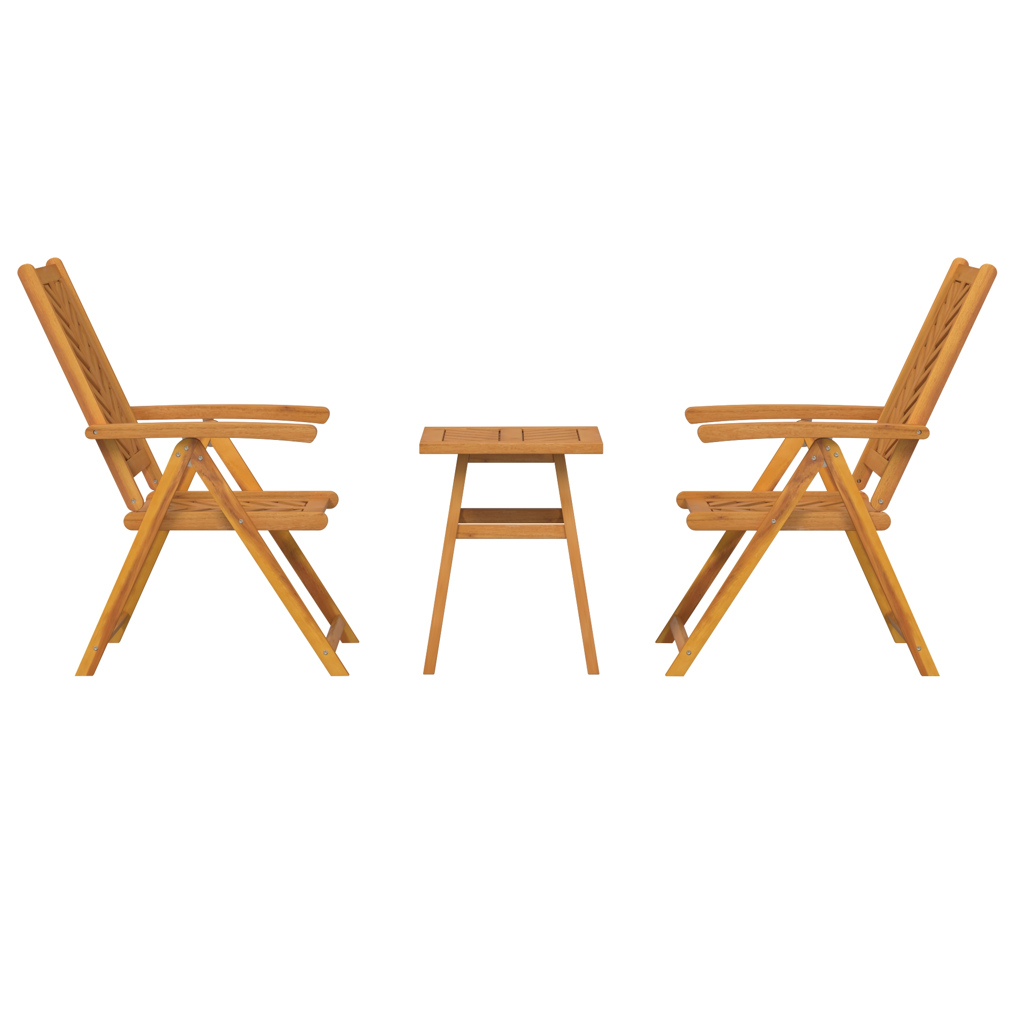 - Lemn masiv de acacia: Creat pentru rezistență, acest set bistro este realizat din lemn masiv de acacia, cunoscut pentru durabilitatea sa împotriva elementelor, asigurându-se că va dura în orice mediu exterior. Modelele naturale ale fibrei îmbunătățesc estetică și oferă un farmec rustic care se potrivește cu diverse stiluri de grădină.