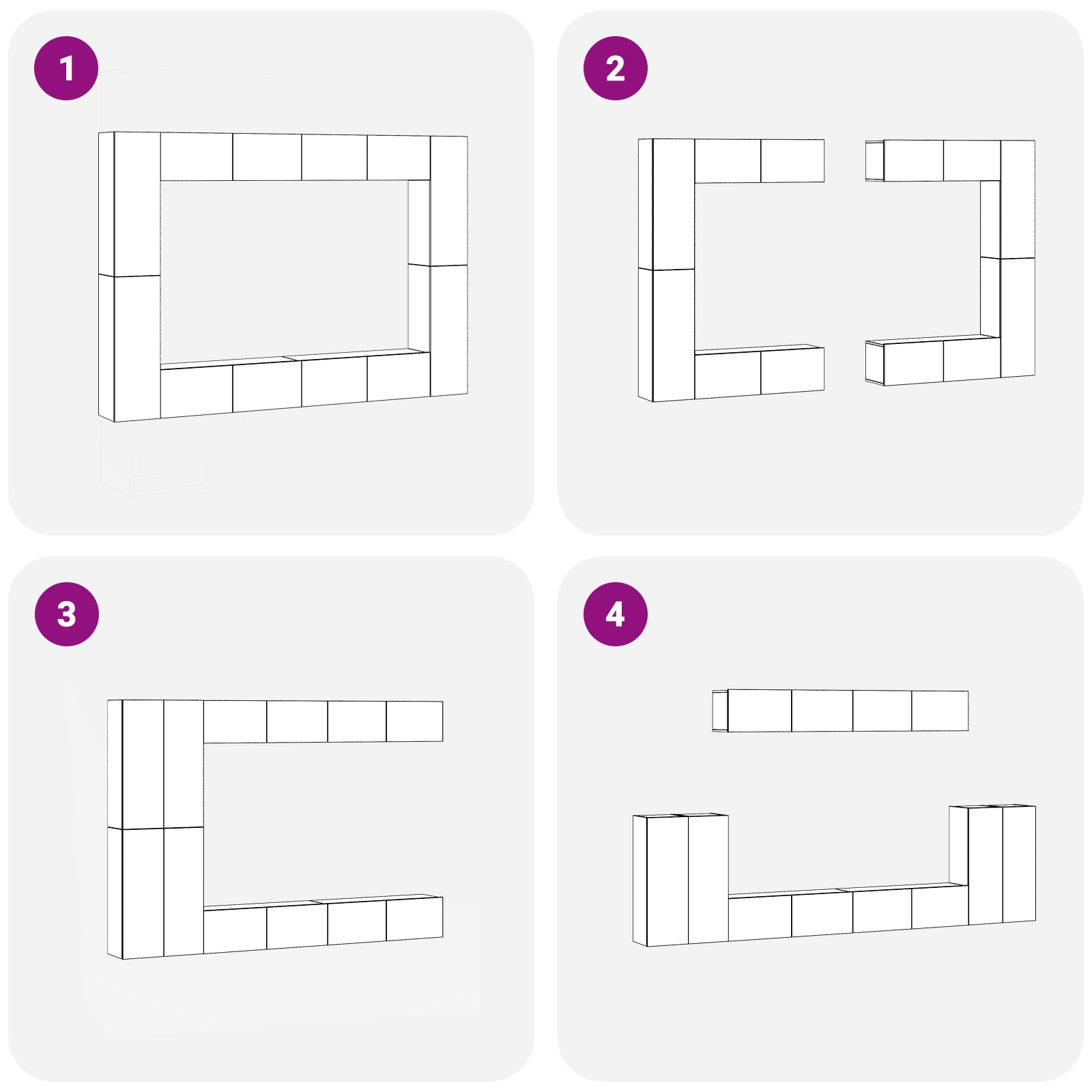 Acest set vine cu piese modulare robuste care se pot rearanja pentru a se potrivi spațiului tău. E ideal pentru susținerea televizoarelor și a echipamentului de divertisment, fiind exact ce-ți trebuie pentru orice locuință pentru adulți.