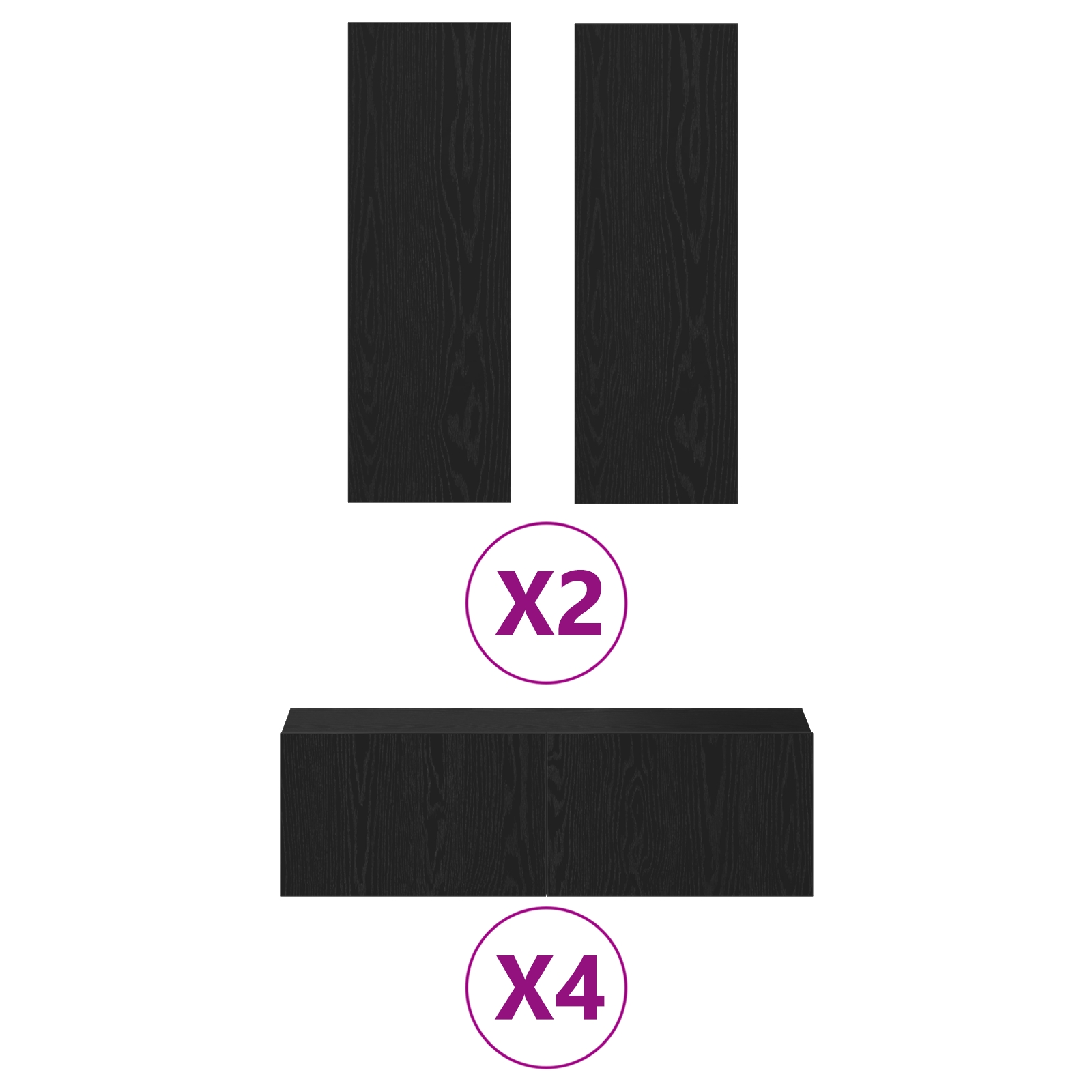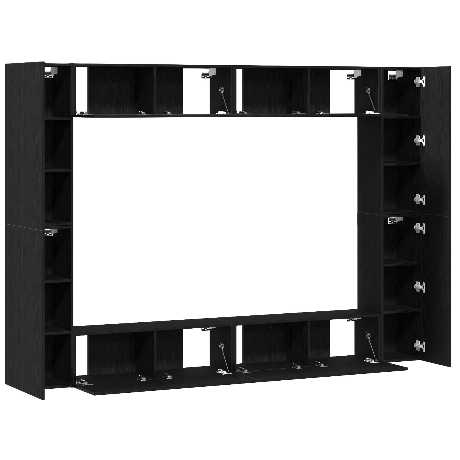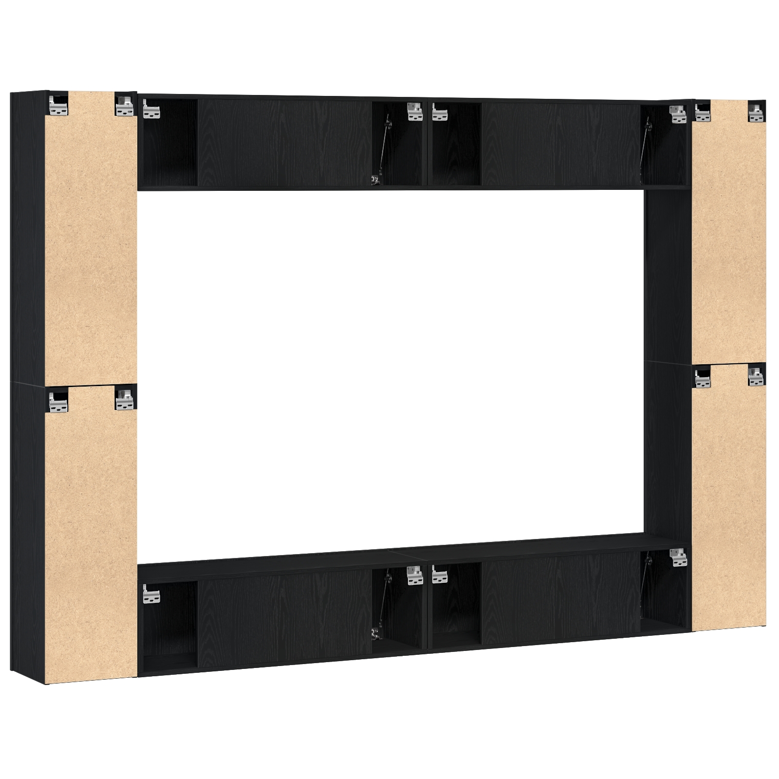 Set de 8 piese pentru Cabinet TV, Montat pe Perete, Stejar Negru, Lemn Ingineresc