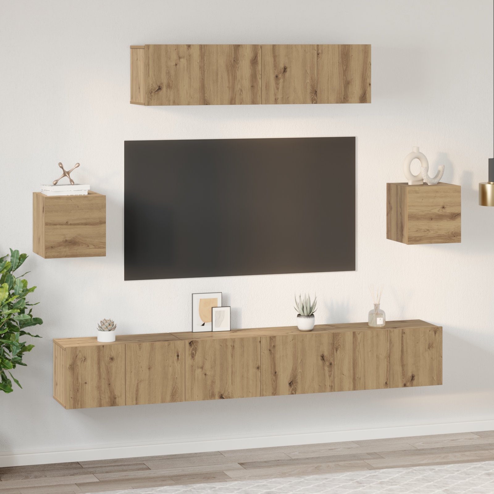 Set comodă TV Pe perete 7 pcs stejar artizanal 80 x 30 x 30 cm