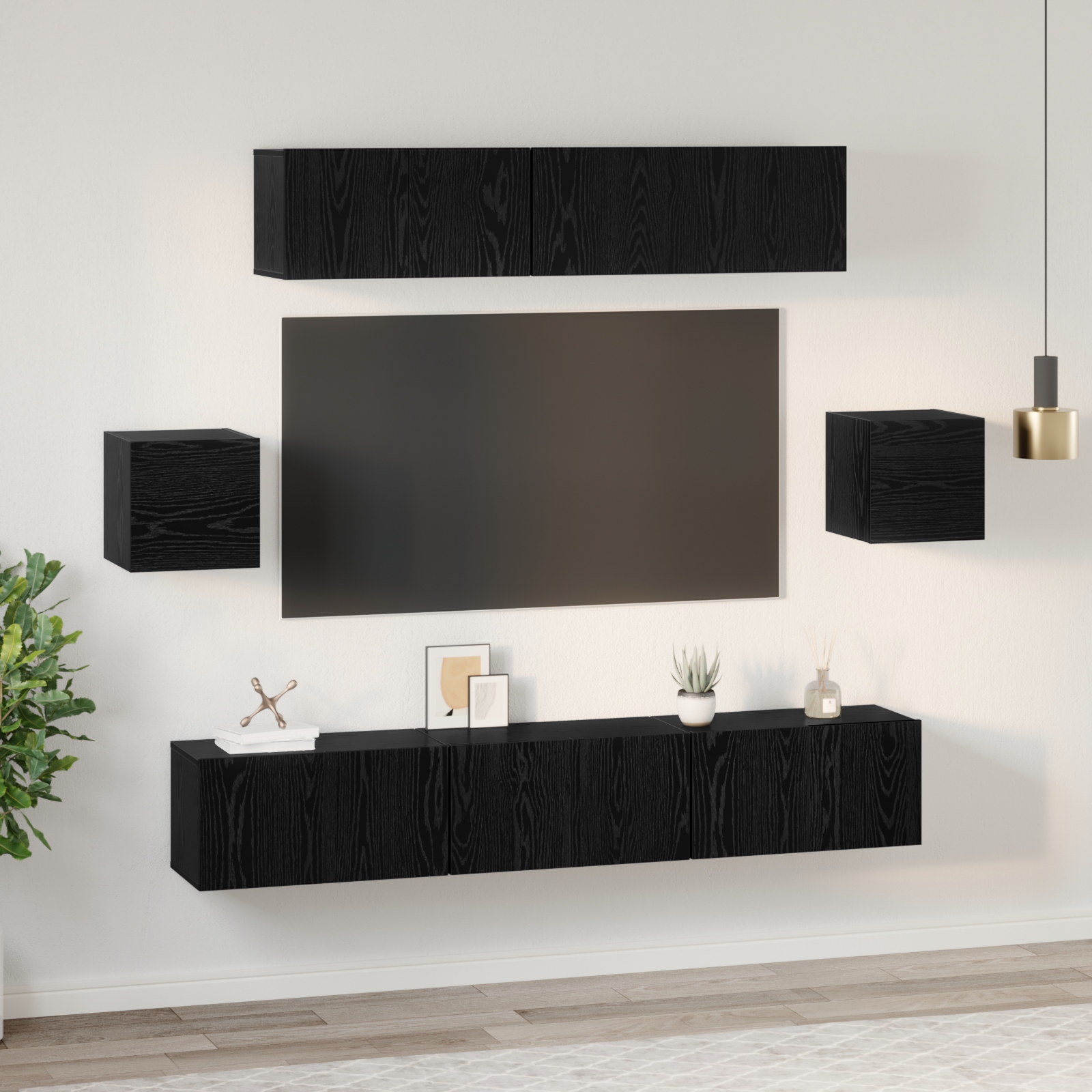 Set comodă TV 7 pcs Stejar negru 80 x 30 x 30 cm Lemn compozit
