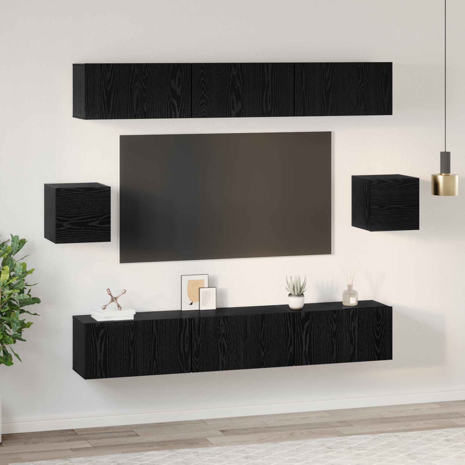 Set comodă TV 8 pcs Stejar negru 60 x 30 x 30 cm Lemn compozit