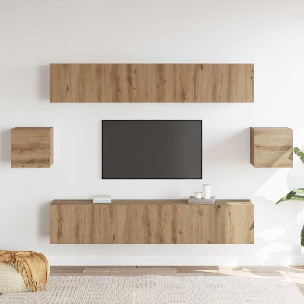Îmbunătățește-ți livingul cu setul cabinet TV cu 6 piese și finisaj fain din stejar artisan. Proiectat pentru o casă modernă, acest set aduce atât utilitate cât și stil.
