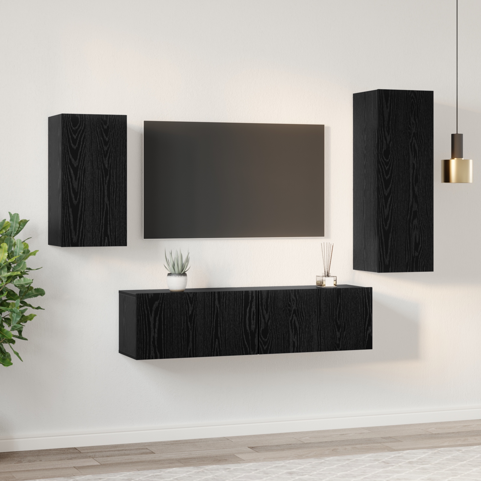 Set comodă TV Pe perete 4 pcs Stejar negru 30.5 x 30 x 90 cm