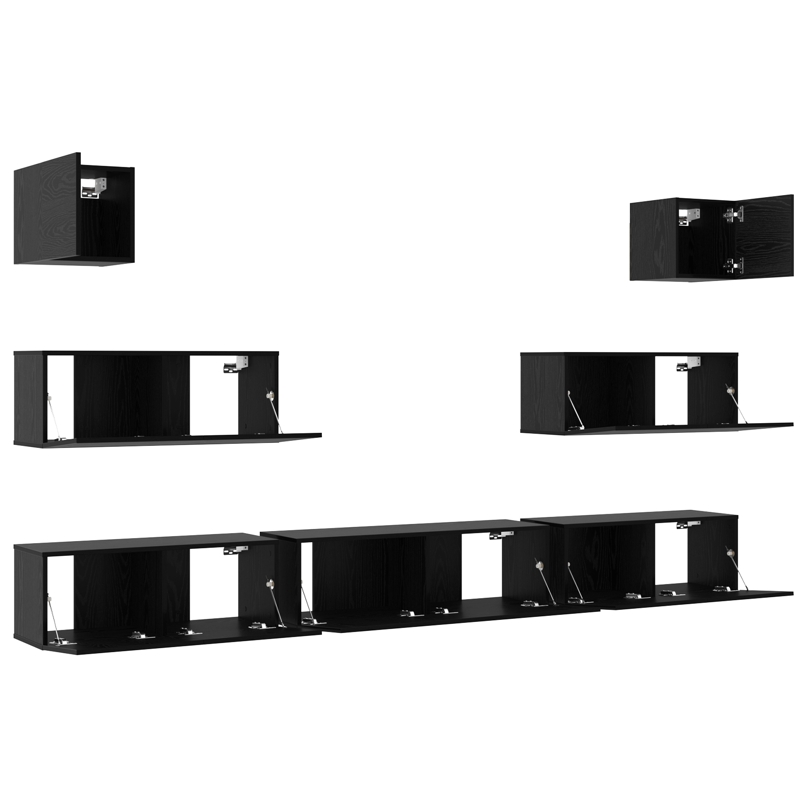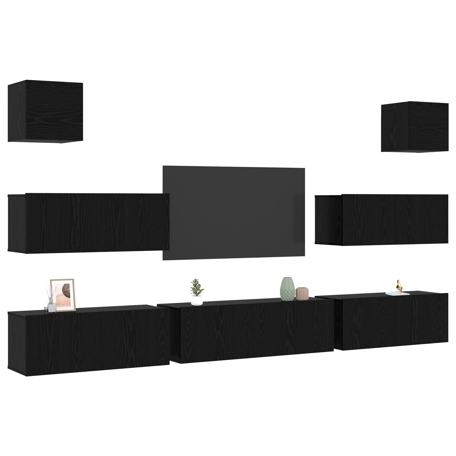 Set Dulap TV 7 pcs Stejar negru 100 x 30 x 30 cm Lemn compozit