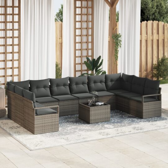 Set de canapele pentru grădină cu pernă 11 pcs Gri deschis