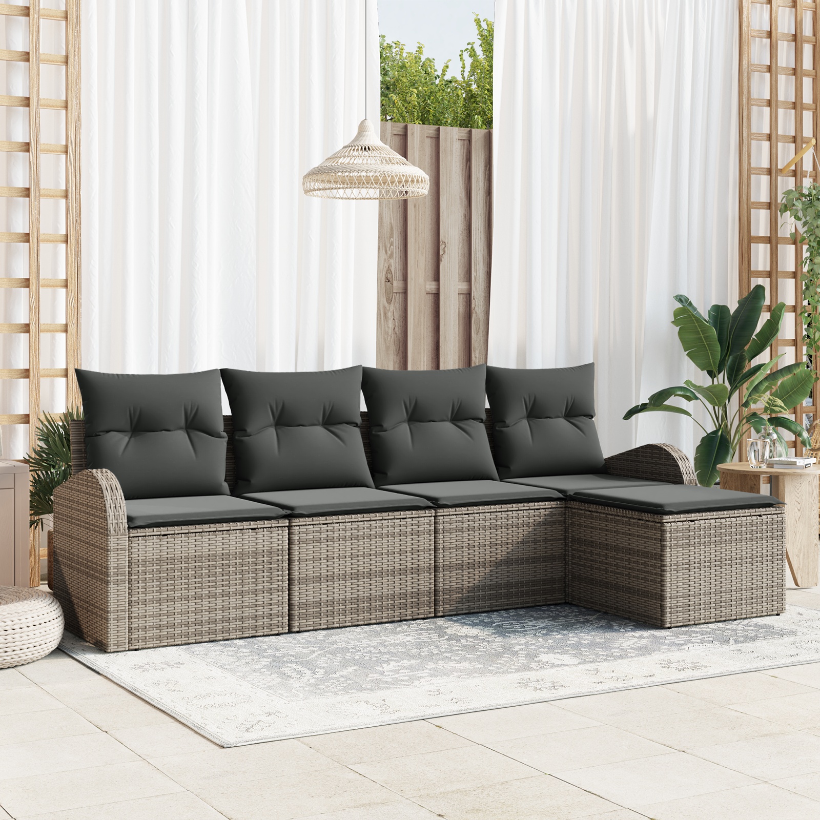 Set de canapele pentru grădină cu pernă 5 pcs Gri Rattan poli