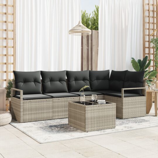 Set de canapele pentru grădină cu pernă 6 pcs Gri deschis