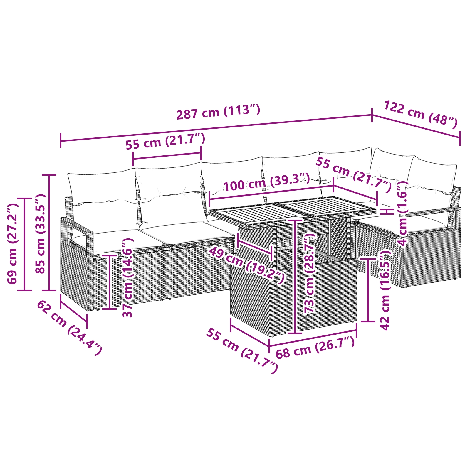 - Set Complet: Include două canapele cu brațe, un fotoliu de colț, trei scaune centrale și o masă de grădină, fiecare proiectat cu propriile capacități de depozitare. Acest set maximizează spațiul și funcționalitatea, oferind loc suficiente pentru toți invitații și depozitare sigură pentru perne și accesorii.