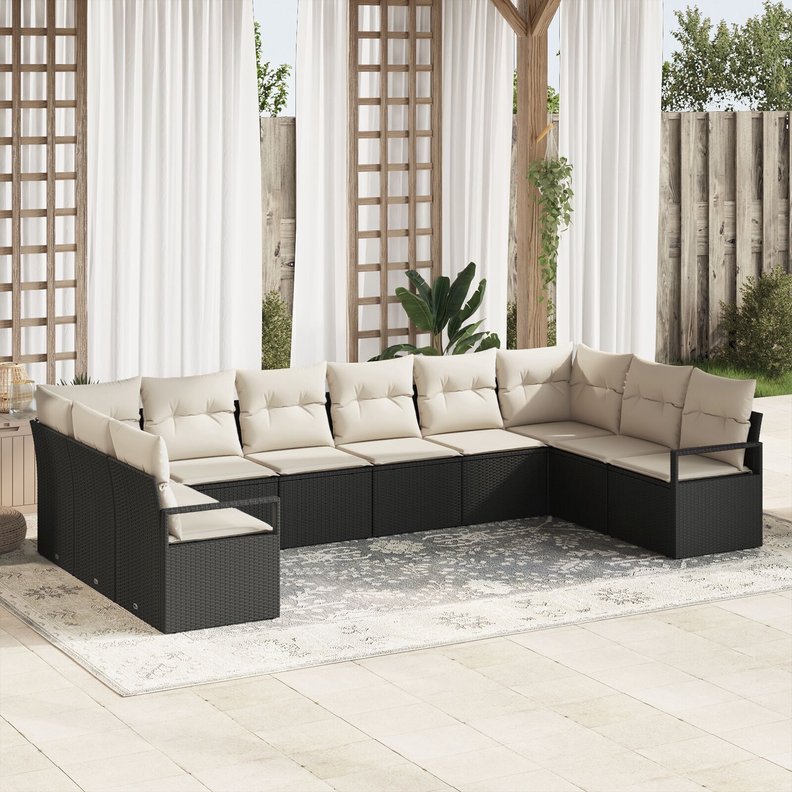 Set de canapele pentru grădină 10 pcs Negru Rattan poli