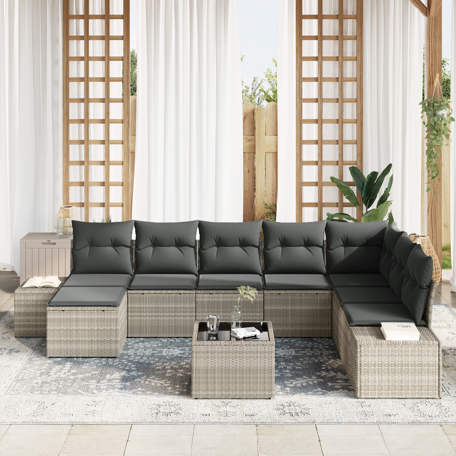 Set de canapele pentru grădină cu pernă 9 pcs Gri deschis