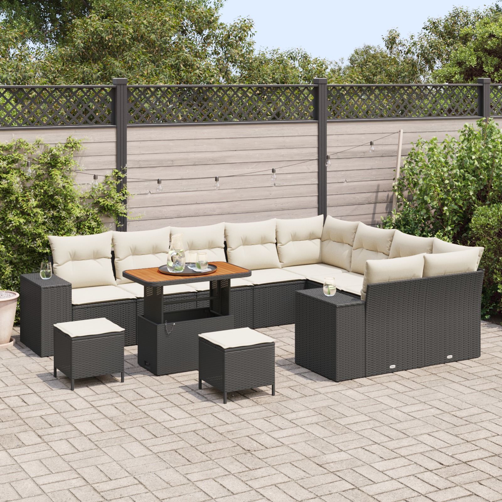 Set de canapele pentru grădină 12 pcs Negru poliratan