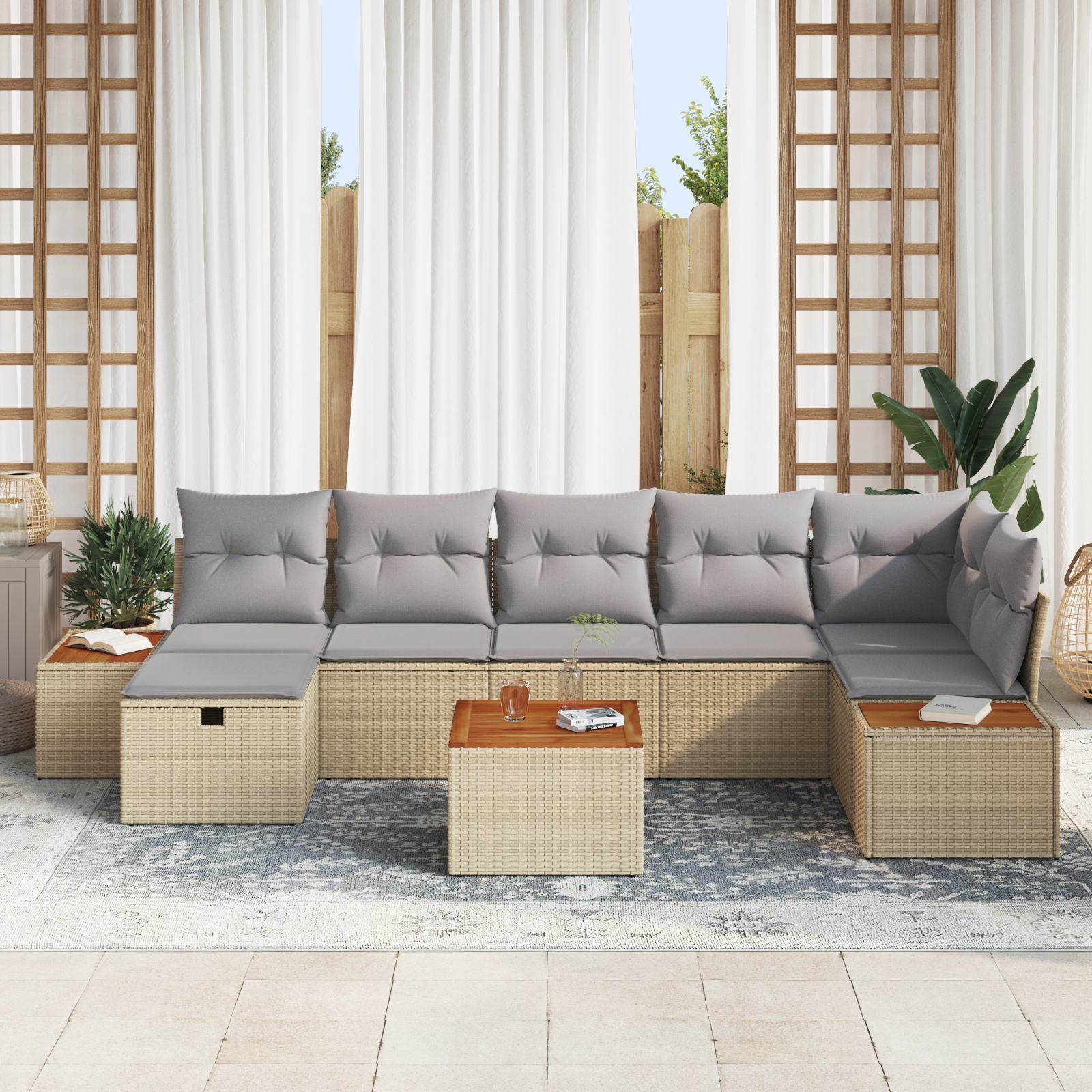 Set de canapele pentru grădină cu pernă 8 pcs Bej Rattan poli