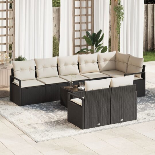 Set de canapele pentru grădină 9 pcs Negru Rattan poli