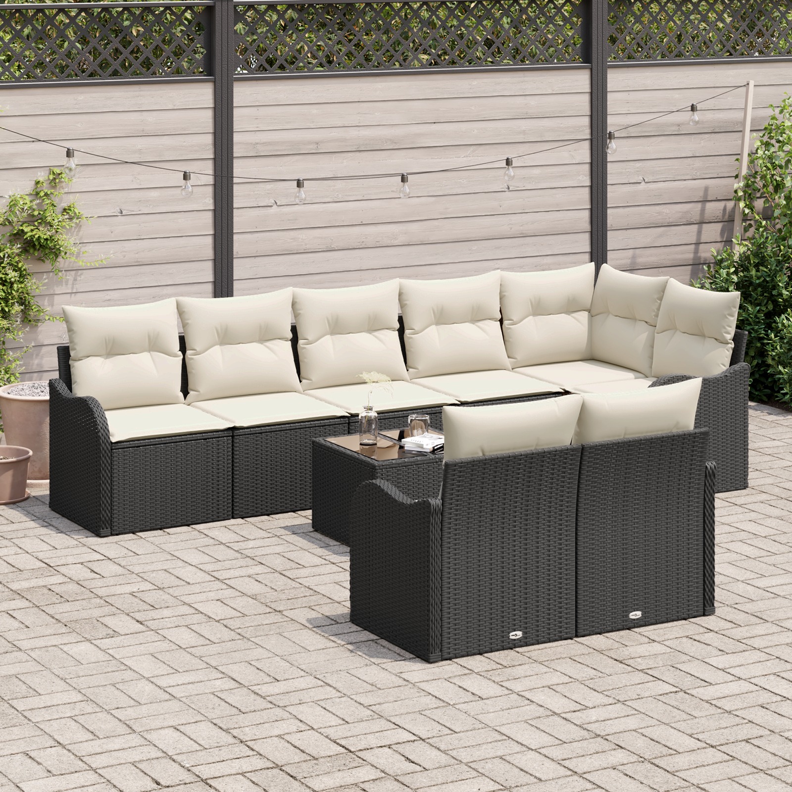 Set de canapele pentru grădină cu pernă 9 pcs Negru Rattan poli
