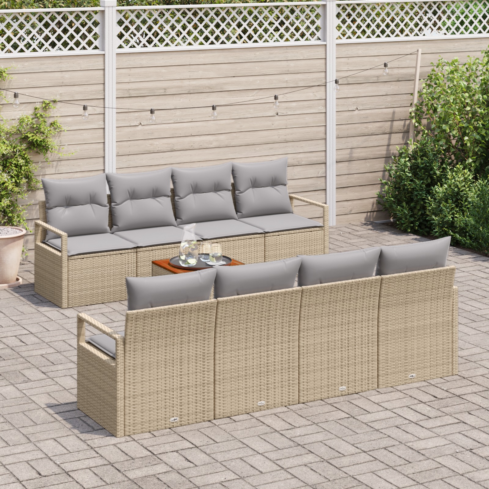 • 4 x Fotoliu central, 4 x Canapea cu brate, 1 x Masă de grădină