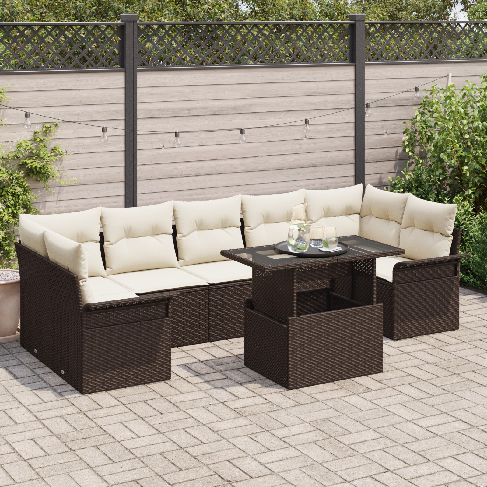 Set de canapele pentru grădină cu pernă 8 pcs Maro Rattan poli