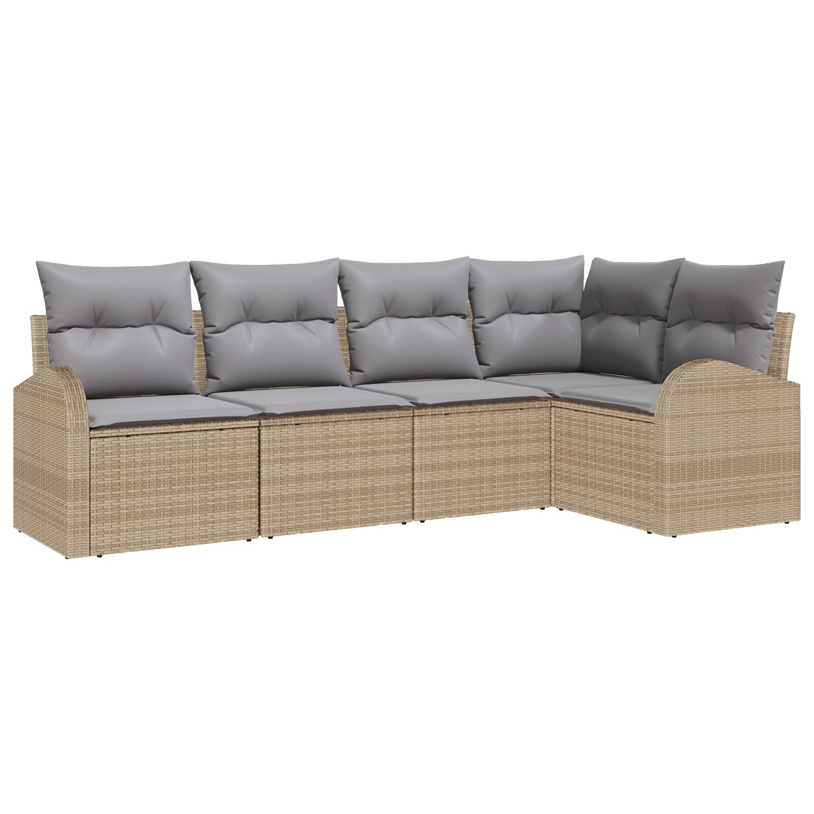 Set de canapele pentru grădină cu pernă 5 pcs Bej Rattan poli