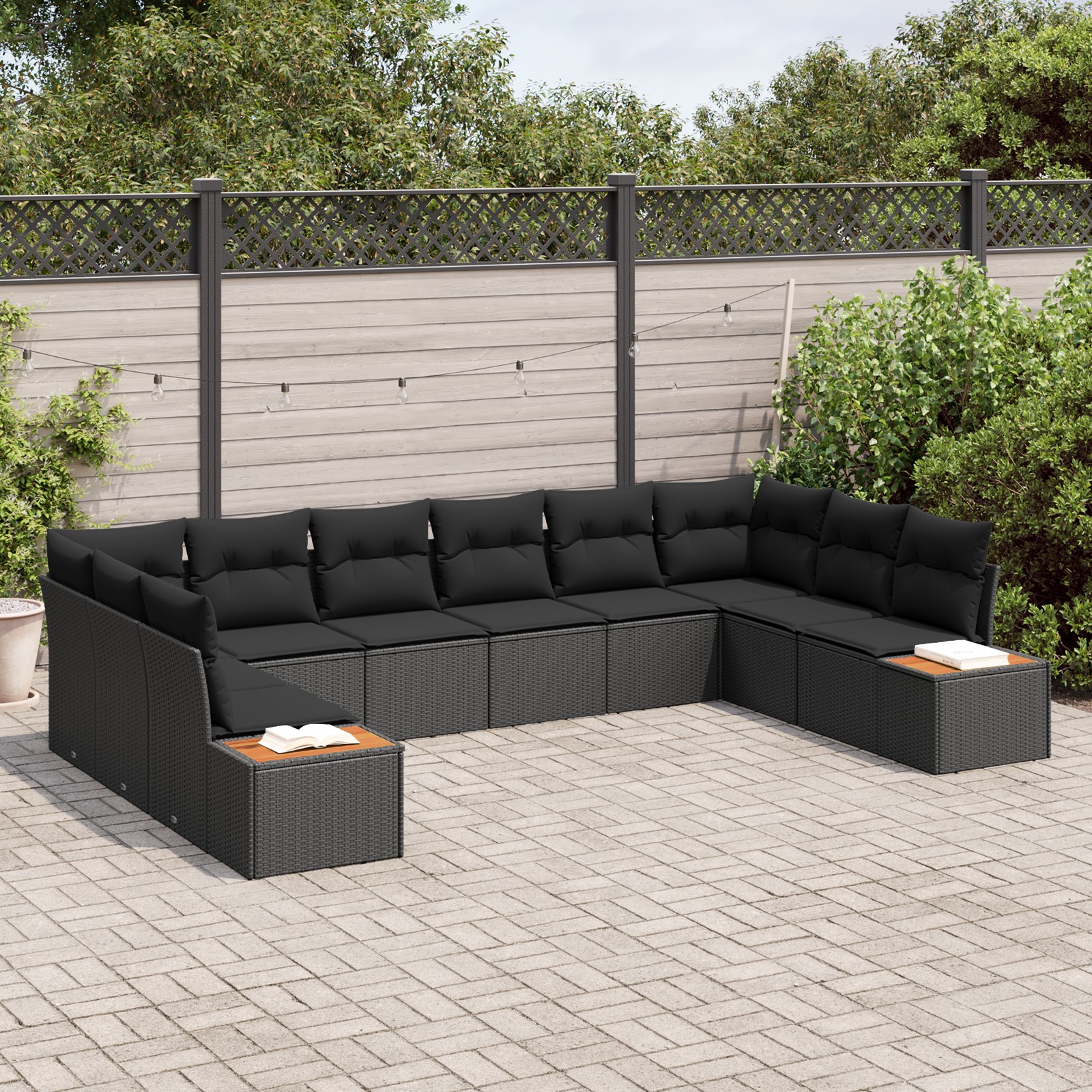 Set de canapele pentru grădină 10 pcs Negru Rattan poli