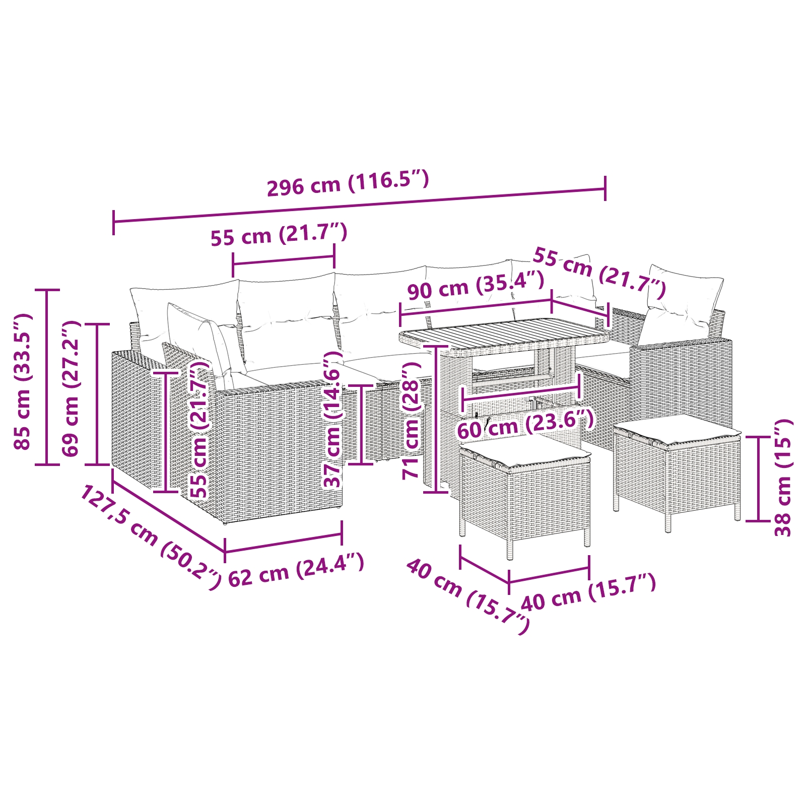 Set de canapele pentru grădină cu pernă 10 pcs negru și crem
