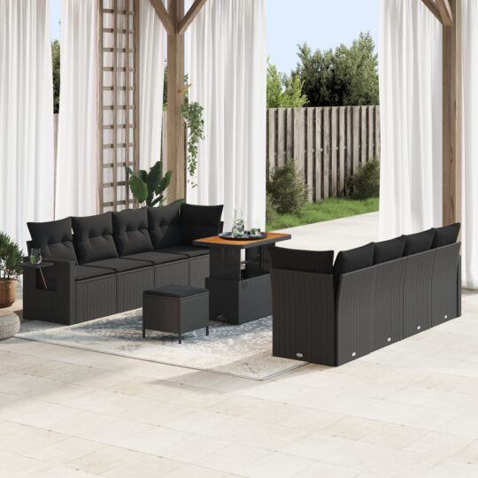 Set de canapele pentru grădină 11 pcs Negru 90 x 55 x 71 cm