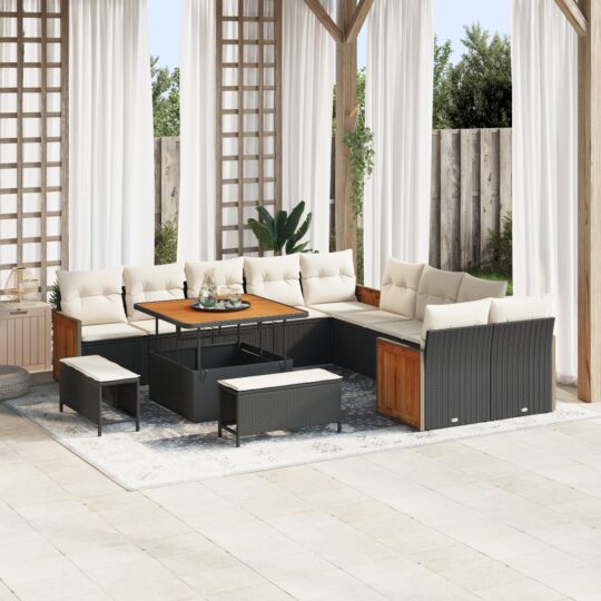 Set de canapele pentru grădină 13 pcs Negru și Crem