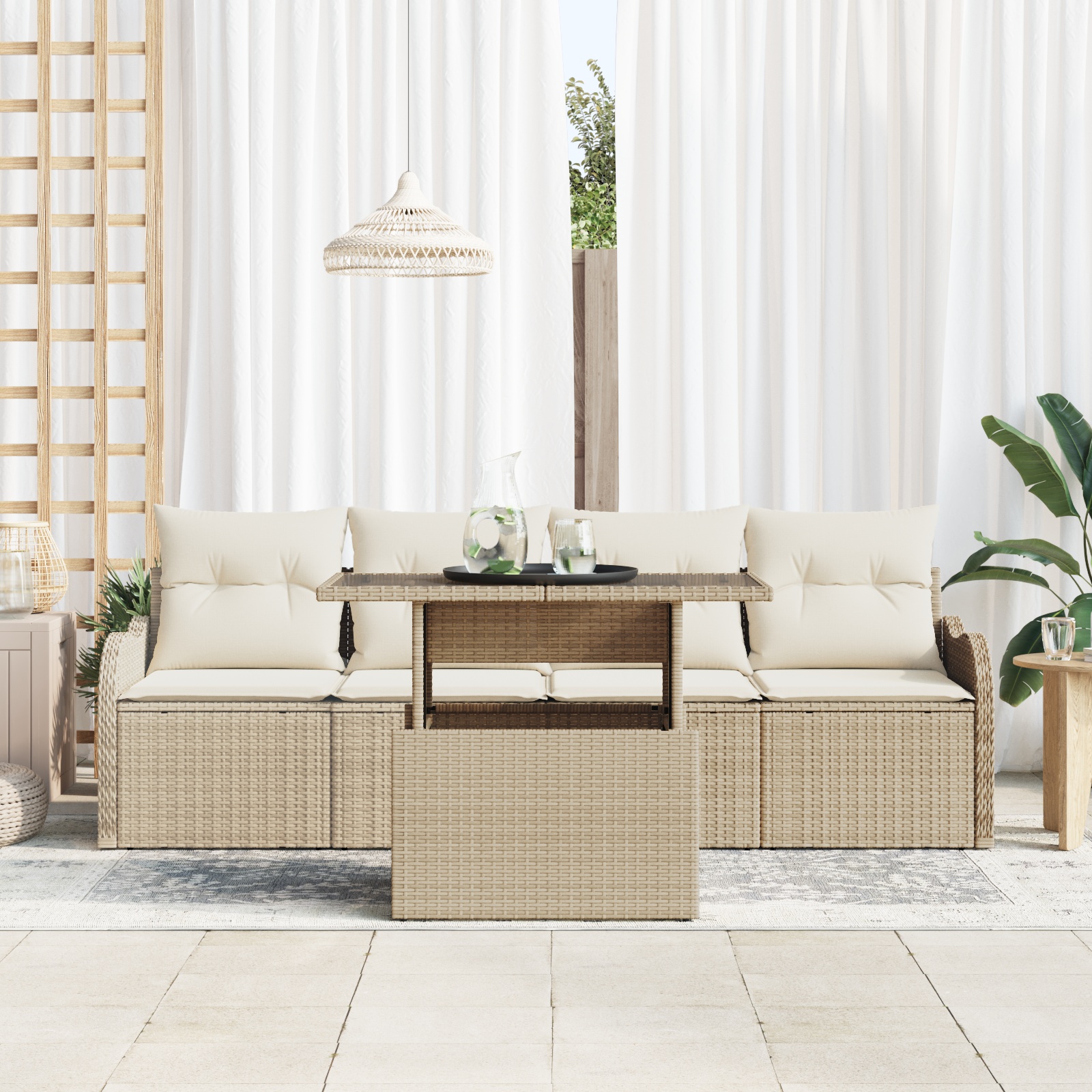 Set de canapele pentru grădină cu pernă 5 pcs Bej Rattan poli