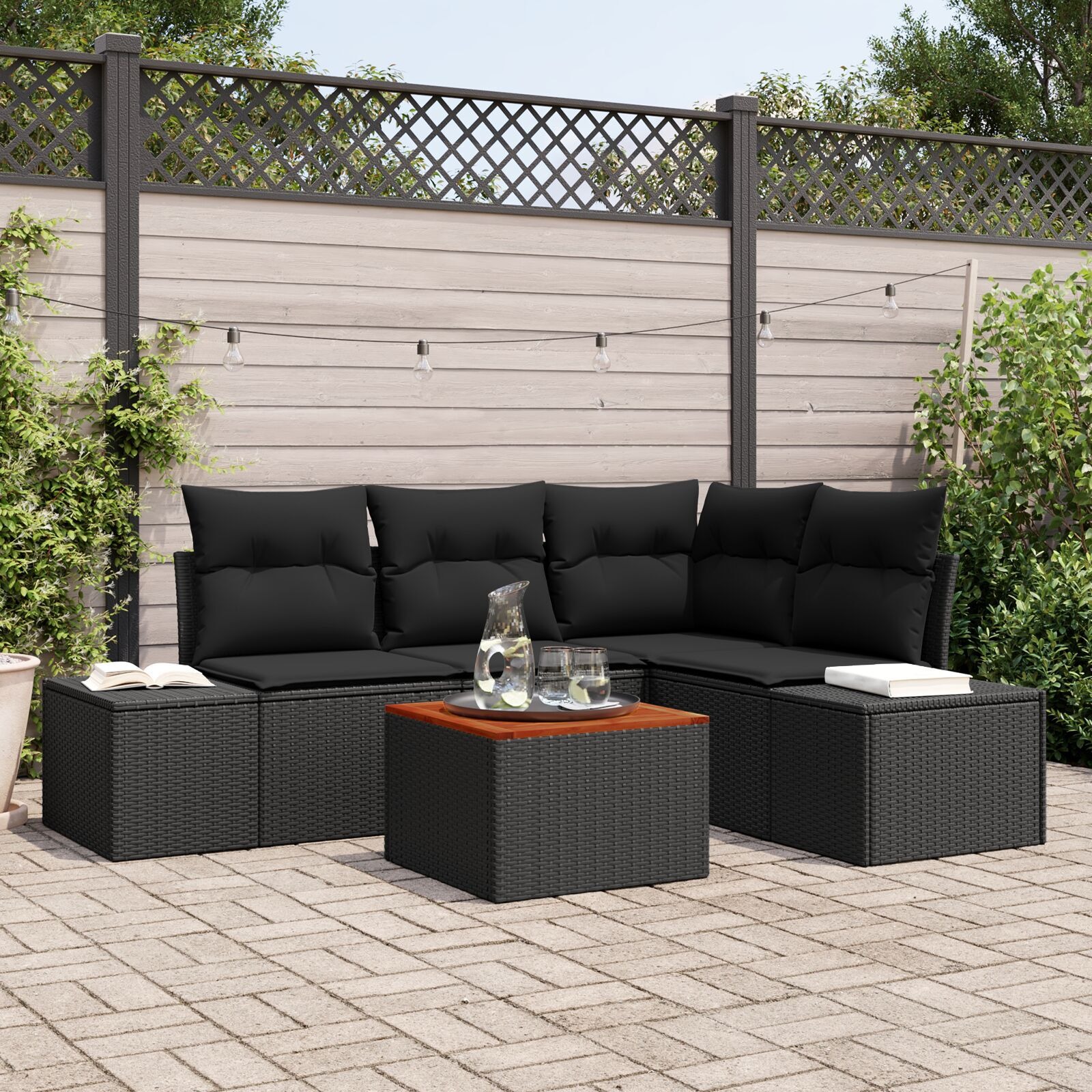 Set de canapele pentru grădină 5 pcs Negru