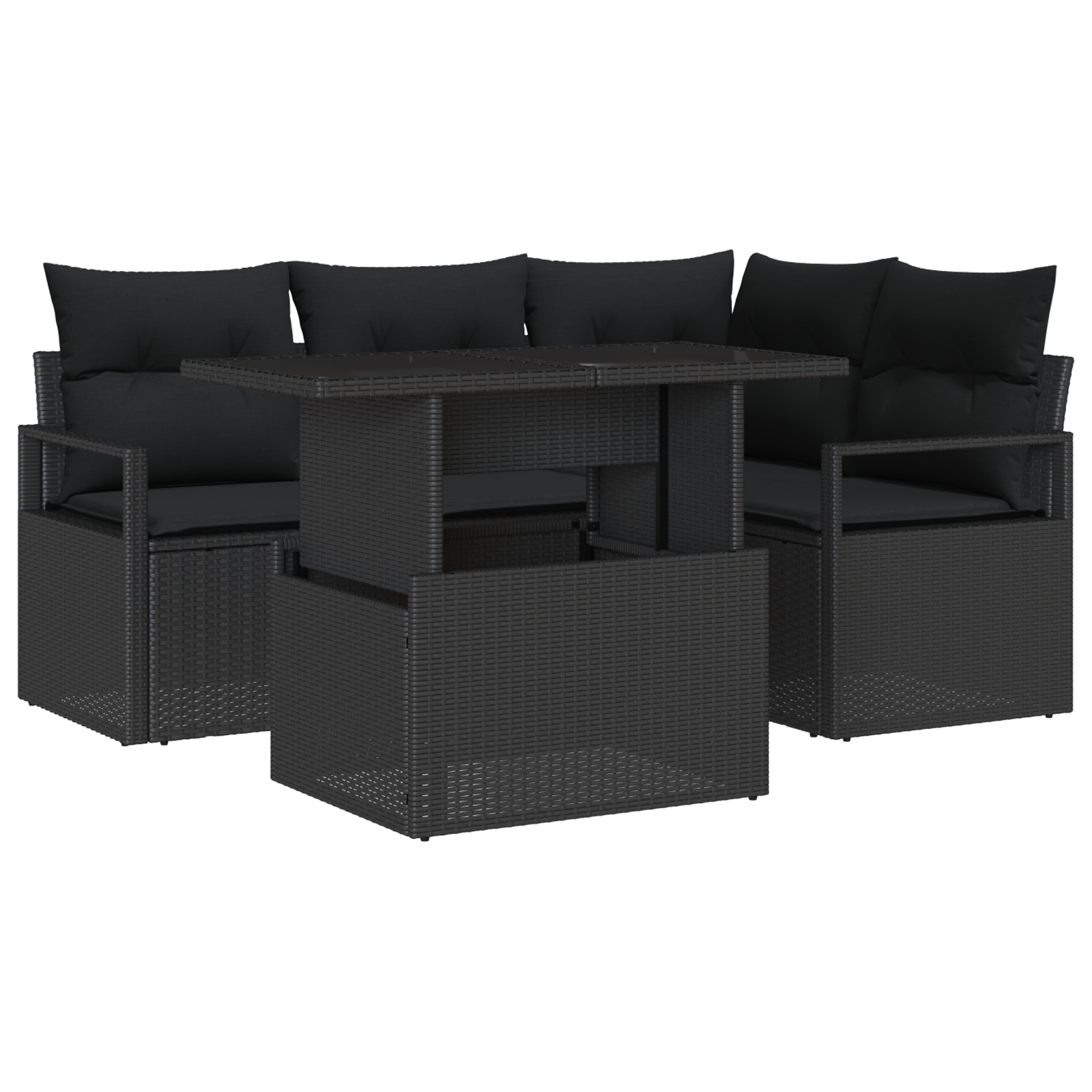 Set de canapele pentru grădină 5 pcs Negru Rattan poli