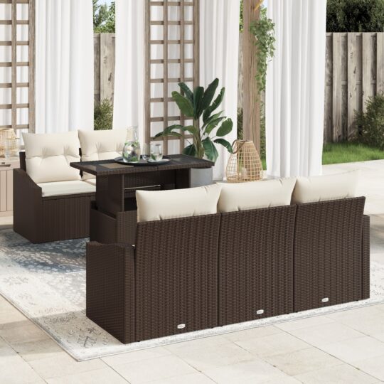 Set de canapele pentru grădină cu pernă 6 pcs maro și crem