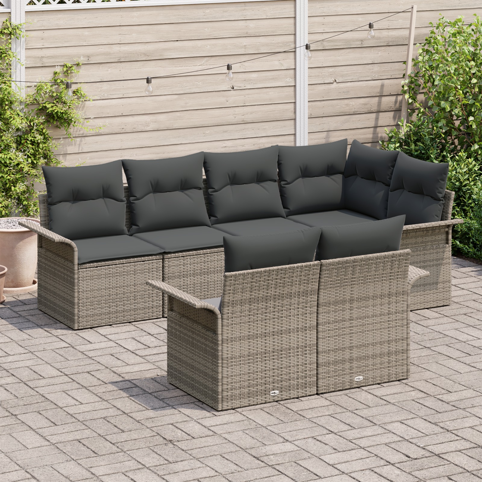 Set de canapele pentru grădină cu pernă 7 pcs Gri Rattan poli