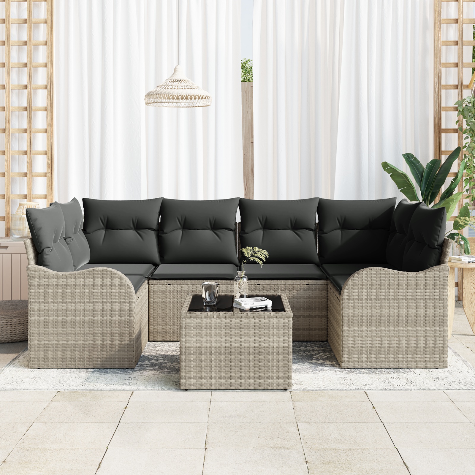 Set de canapele pentru grădină cu pernă 7 pcs Gri deschis
