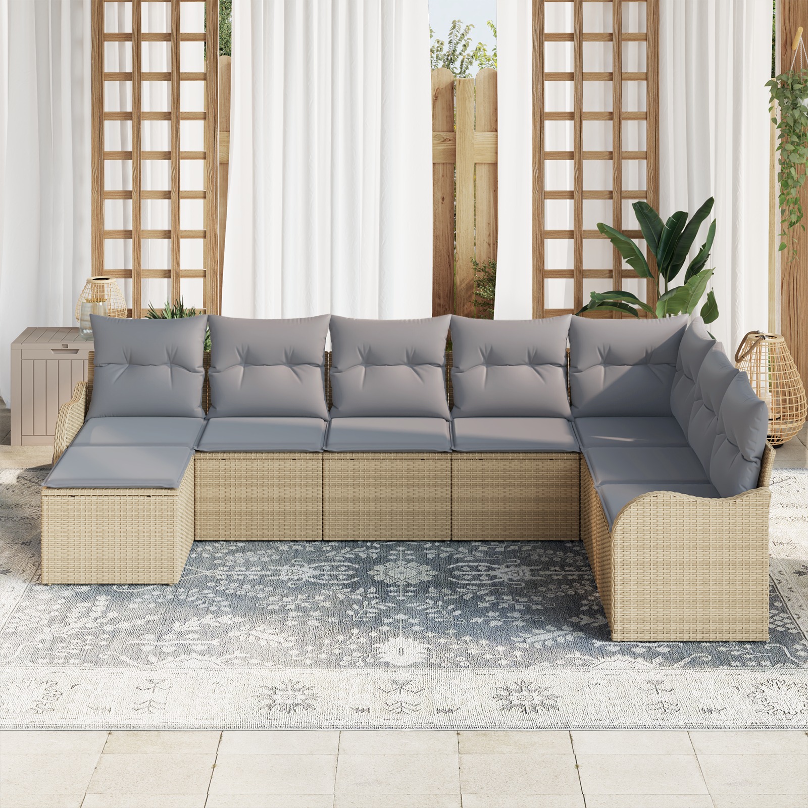Set de canapele pentru grădină cu pernă 8 pcs Bej Rattan poli
