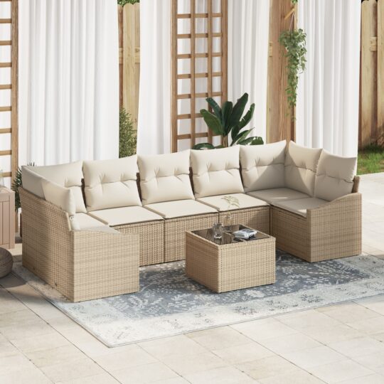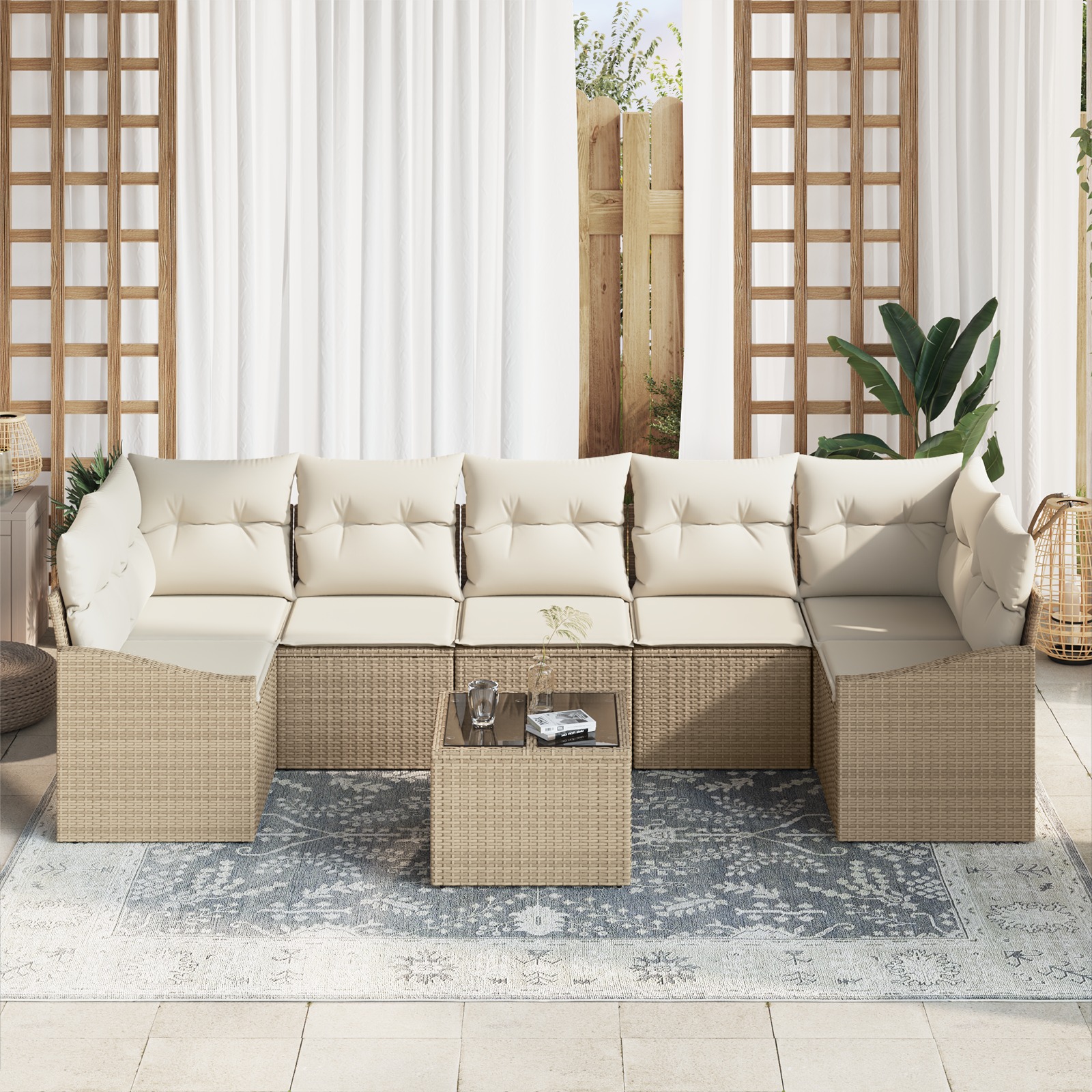 Set de canapele pentru grădină cu pernă 8 pcs Bej și crem