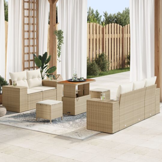 Set de canapele pentru grădină 8 pcs Bej poliratan