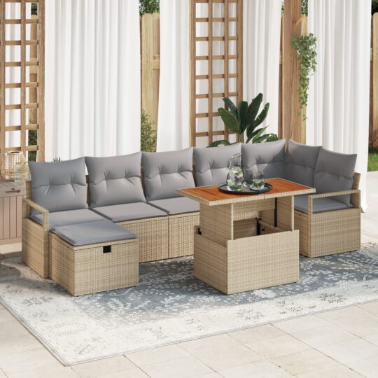 Set de canapele pentru grădină cu pernă 8 pcs Bej Rattan poli