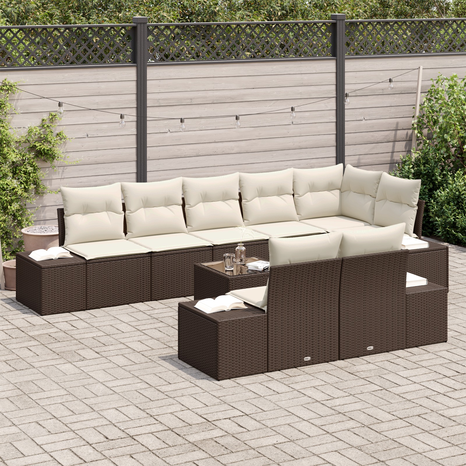 Set de canapele pentru grădină cu pernă 9 pcs maro și crem