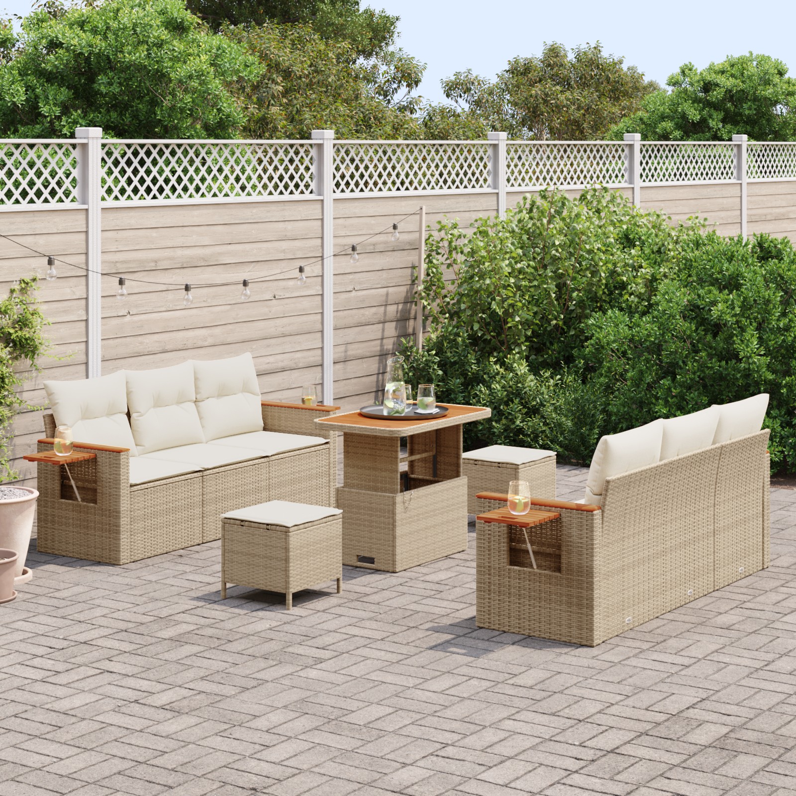 Set de canapele pentru grădină cu pernă 9 pcs bej și crem