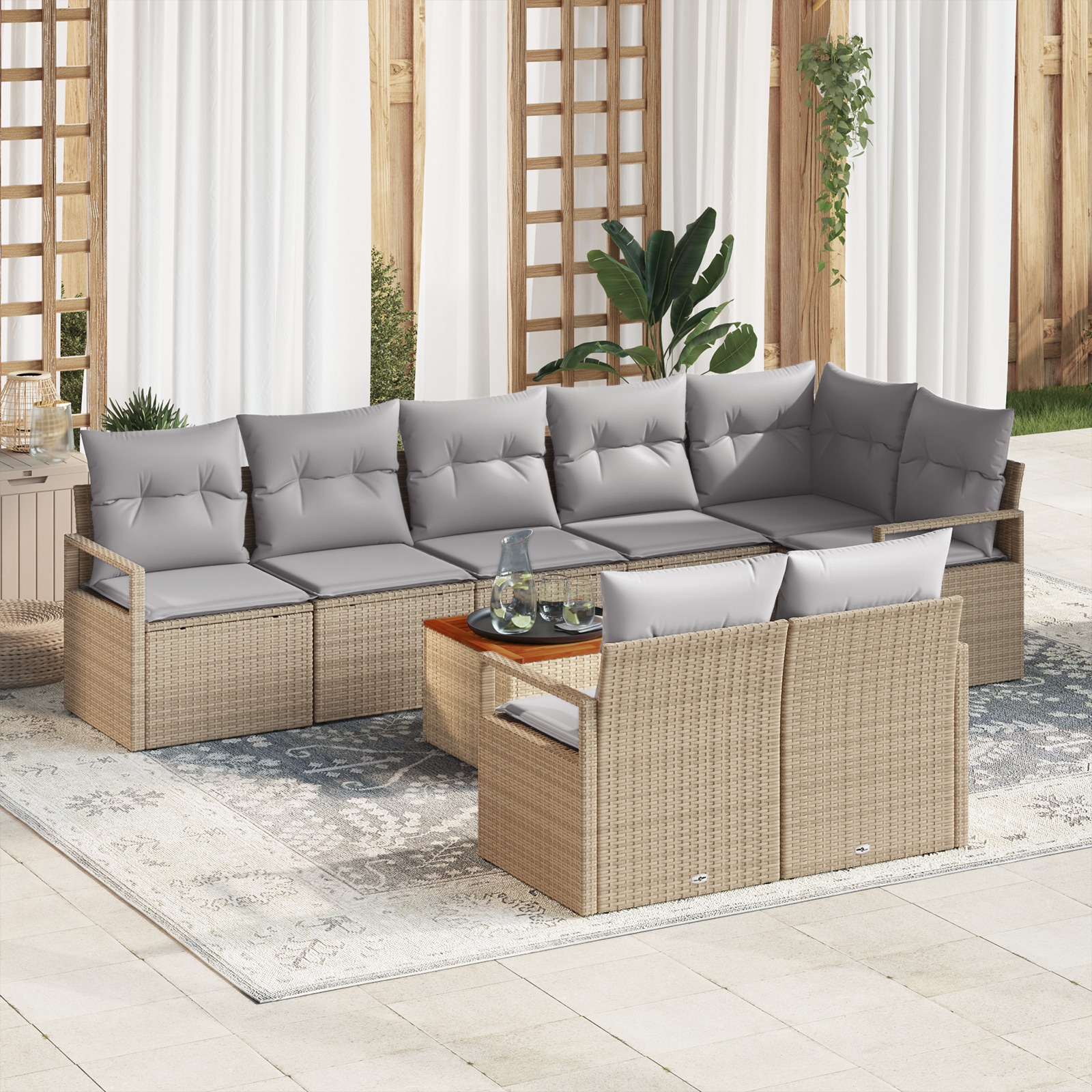 Set de canapele pentru grădină cu pernă 9 pcs Bej Rattan poli