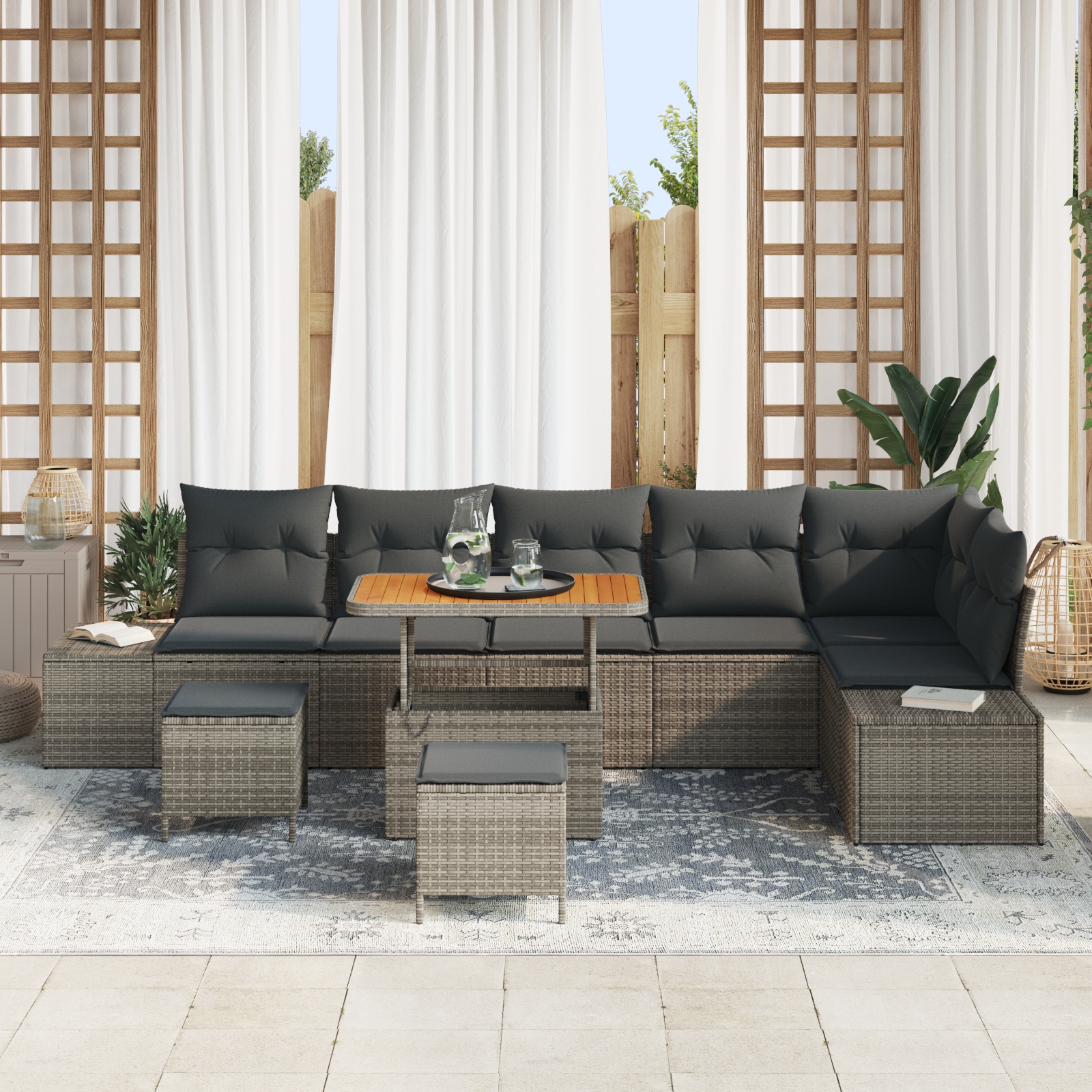 Set de canapele pentru grădină cu pernă 9 pcs Gri Rattan poli