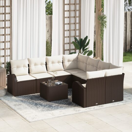 Set de canapele pentru grădină cu pernă 9 pcs Maro și Crem