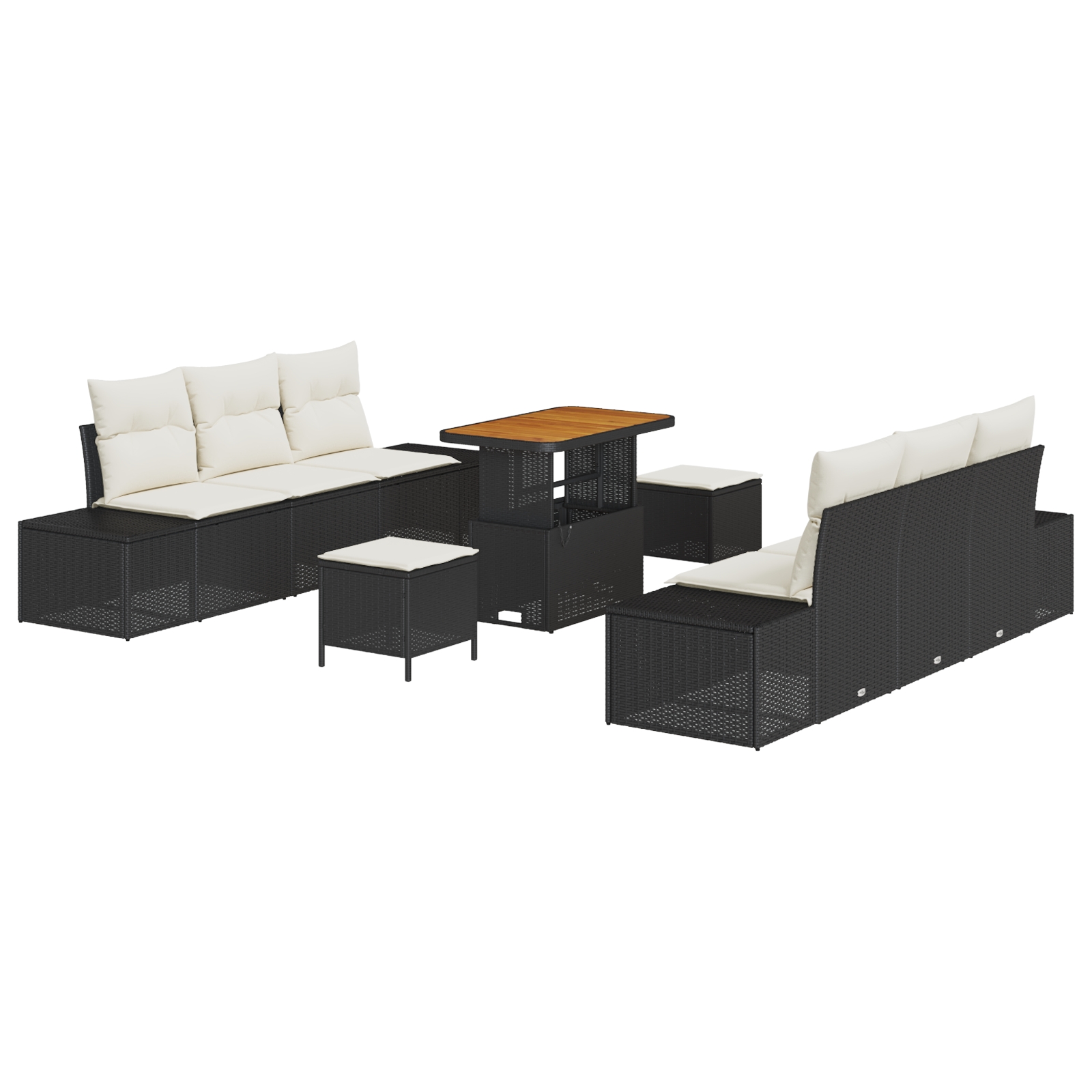 Set de canapele pentru grădină cu pernă 9 pcs Negru Rattan poli
