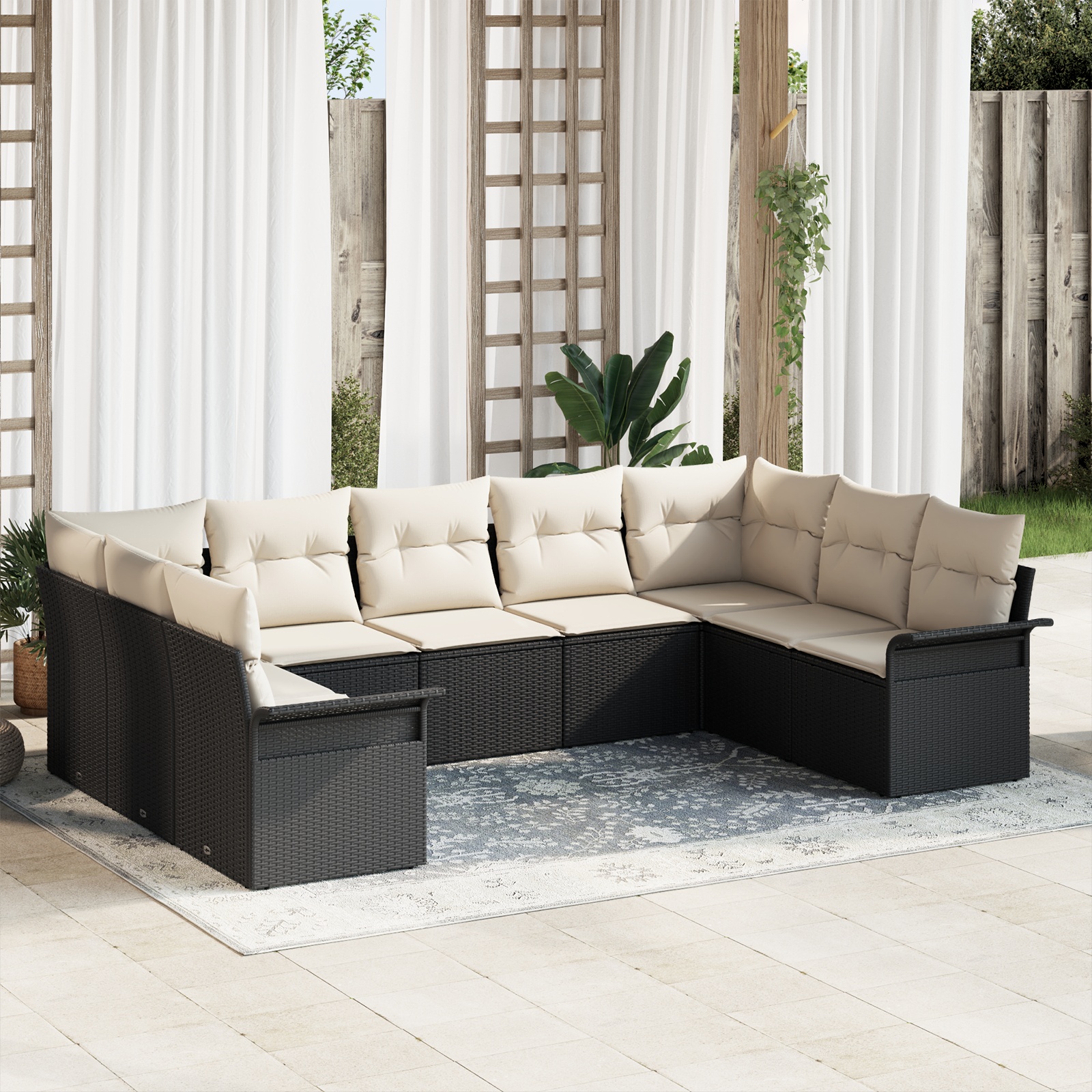 Set de canapele pentru grădină cu pernă 9 pcs Negru Rattan poli