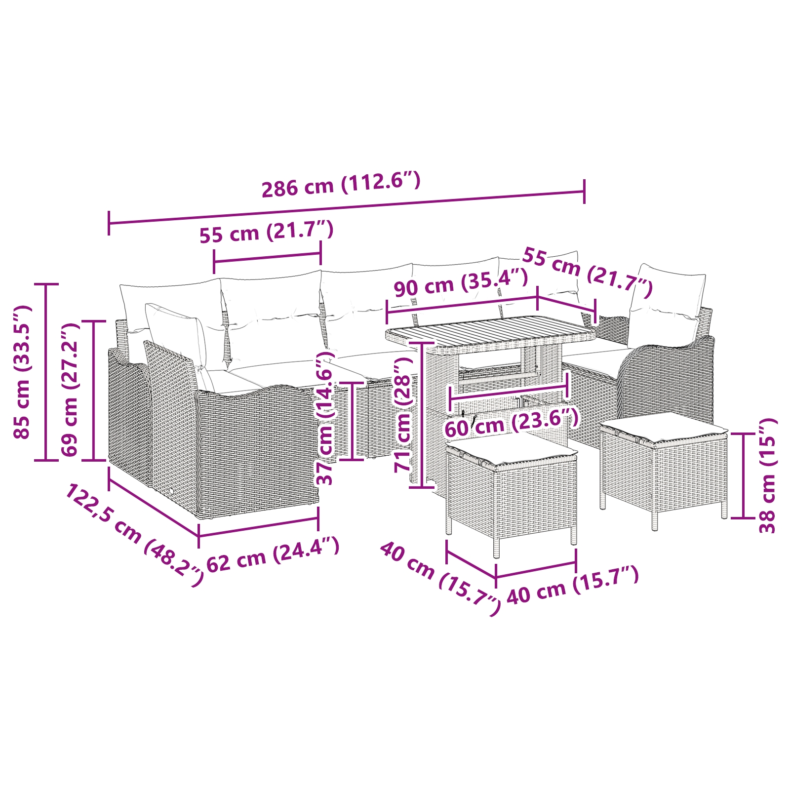 Set de canapele pentru grădină 10 pcs Bej poliratan