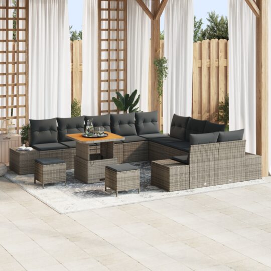 Set de canapele pentru grădină cu pernă 13 pcs Gri Rattan poli