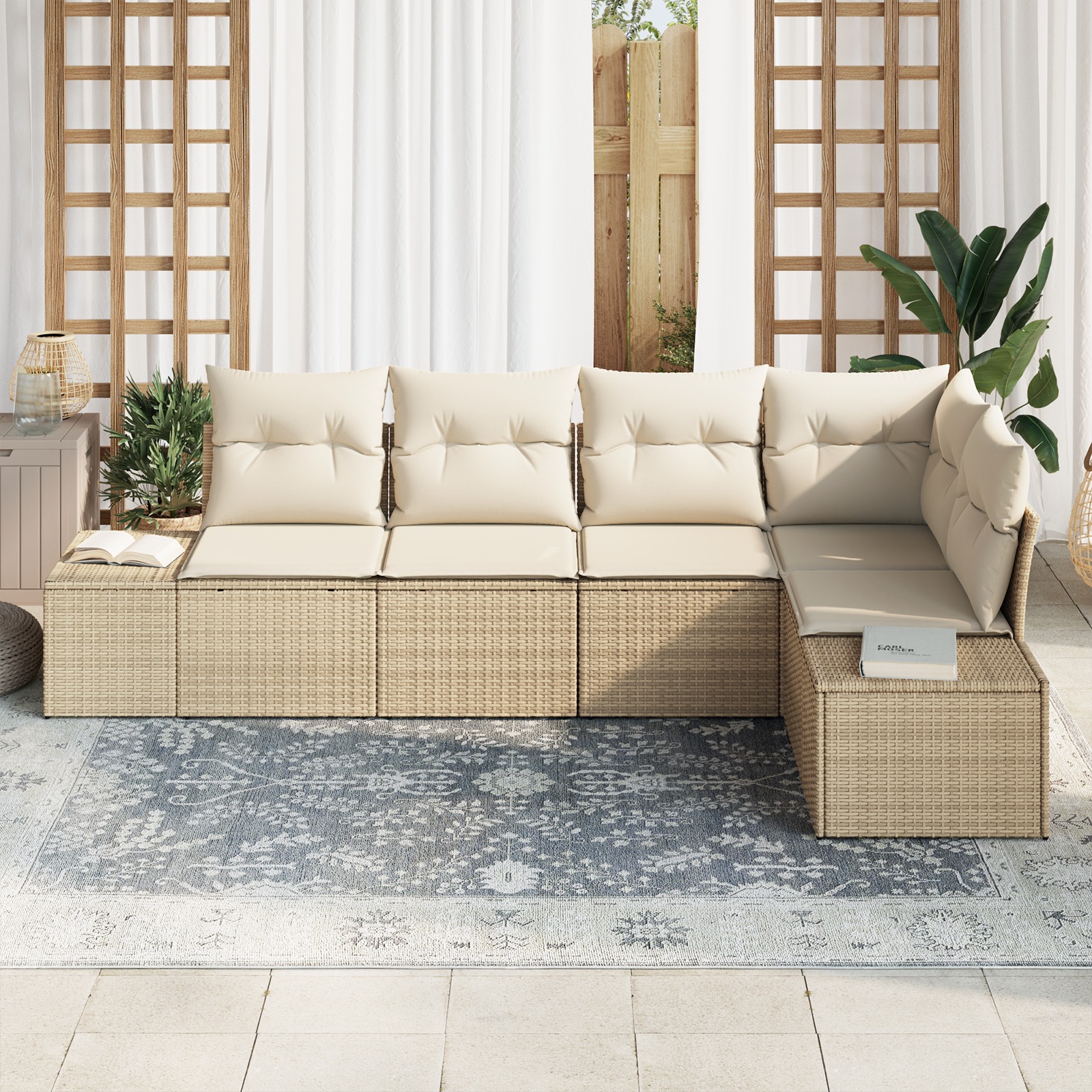 Set de canapele pentru grădină 5 pcs Bej Rattan poli