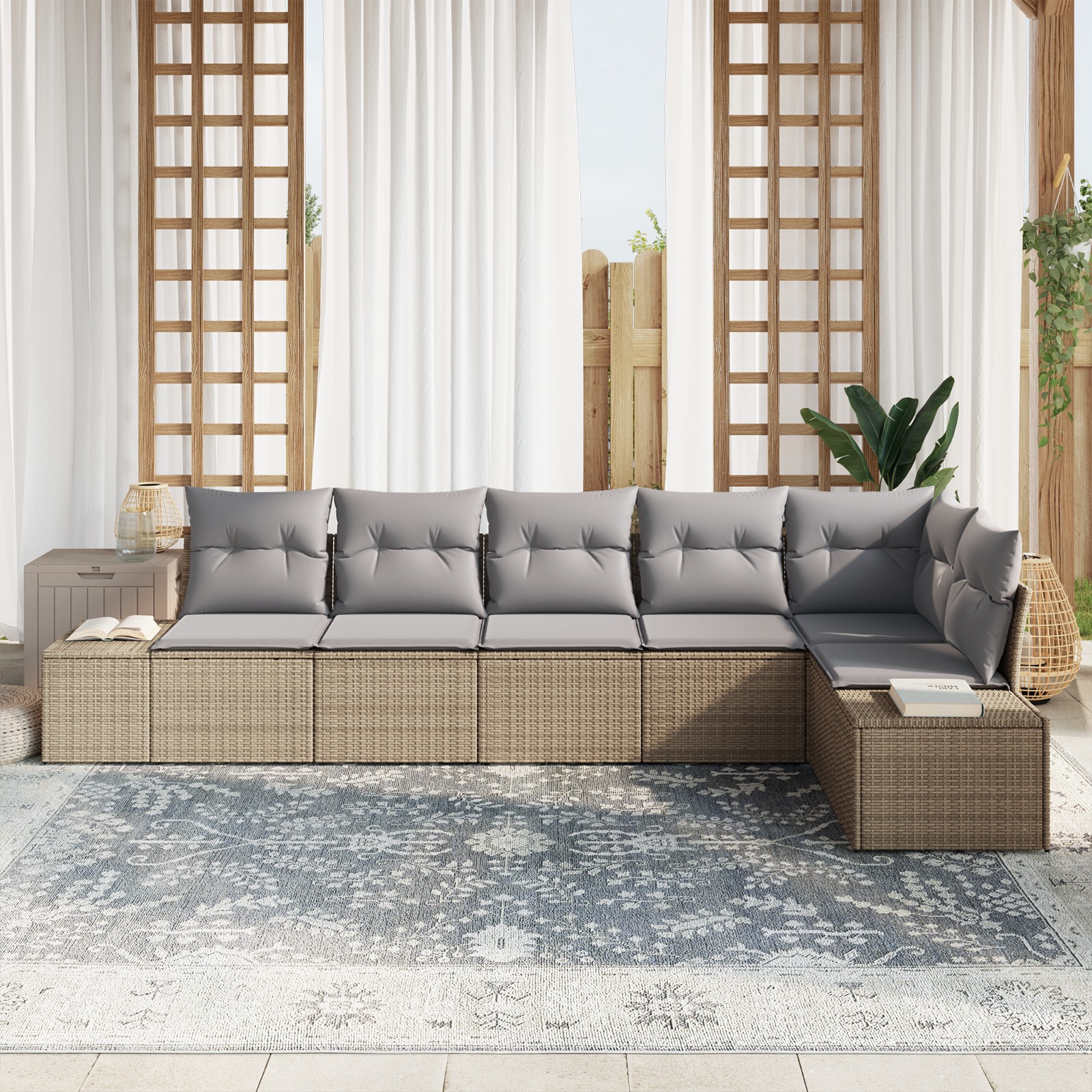 Set de canapele pentru grădină 6 pcs bej și gri Rattan poli