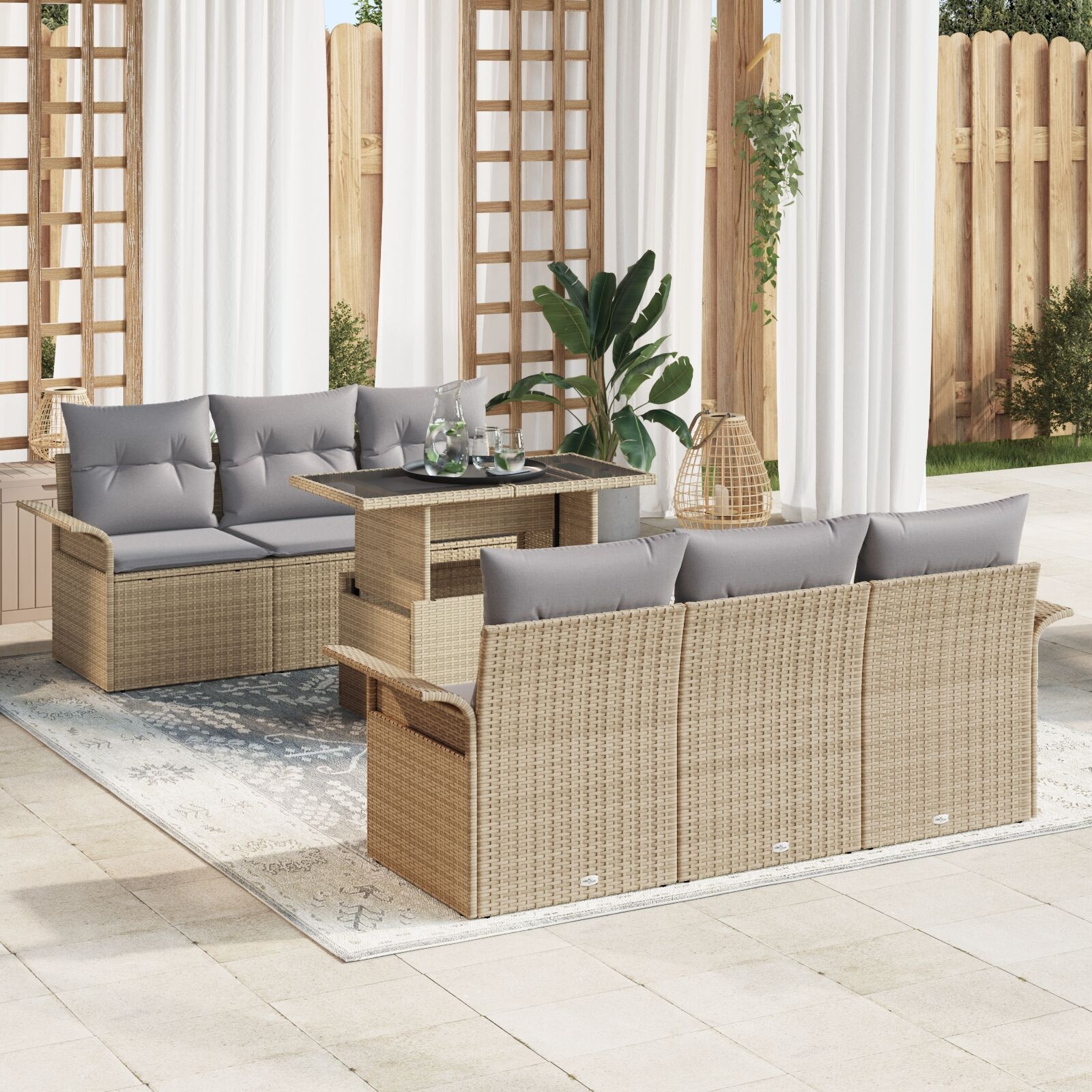 Set de canapele pentru grădină cu pernă 7 pcs Bej Rattan poli
